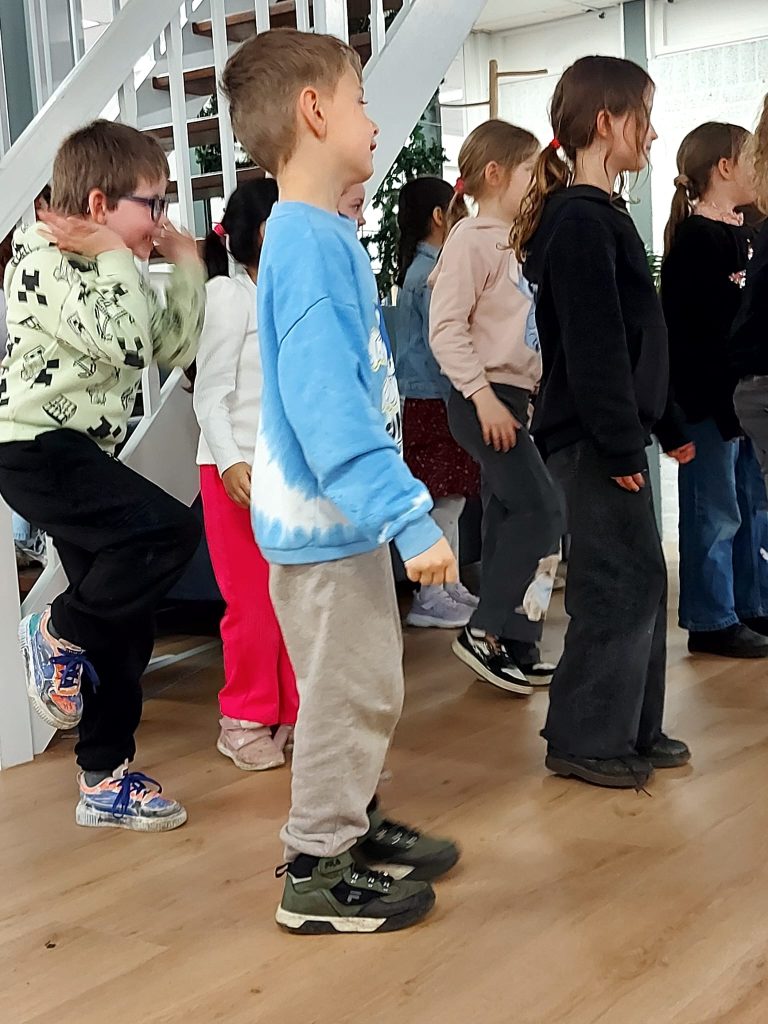 Vandaag mochten we een keertje meedoen met de gymles in De Dars – wat een leuke ervaring! We hebben fanatiek geoefend met de trampoline, mooie acrobatische bewegingen uitgeprobeerd en natuurlijk een enthousiast tikspel gespeeld.