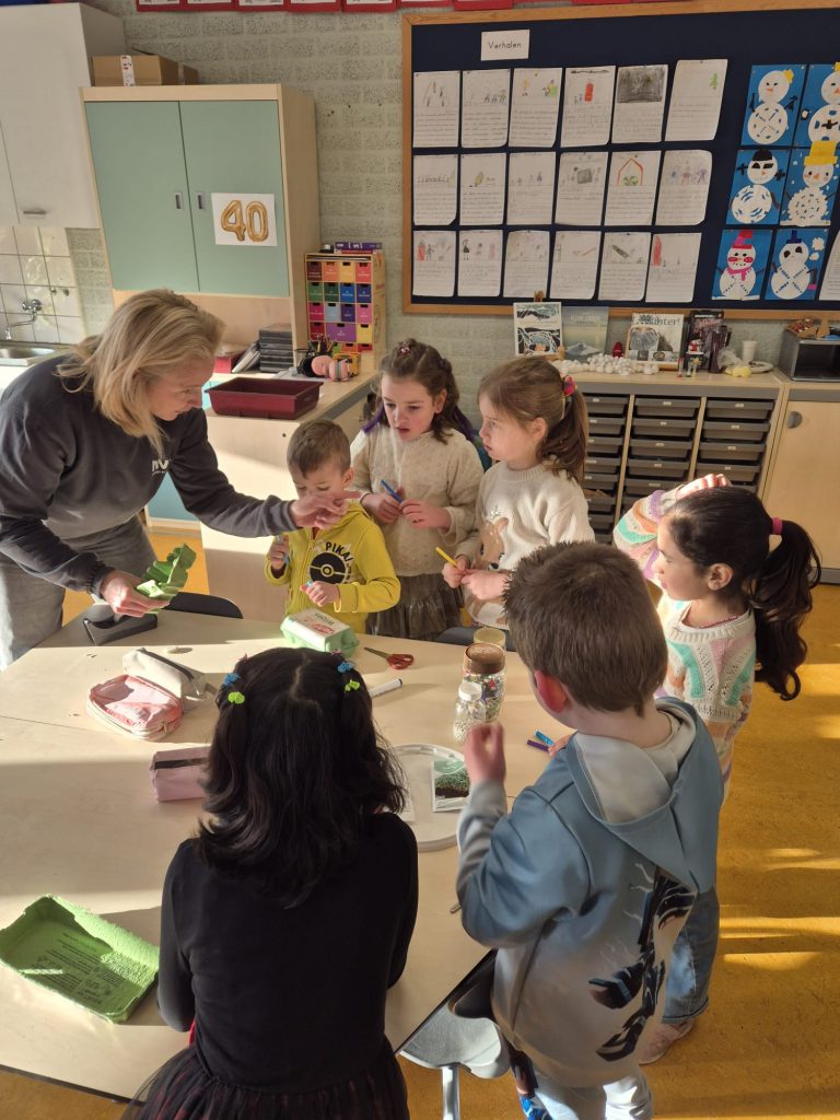 Tijdens het knutselen oefenen de leerlingen spelenderwijs belangrijke vaardigheden. Door te knippen, vouwen en precies te plakken, versterken ze hun fijne motoriek, oog-handcoördinatie en ruimtelijk inzicht. Maar er gebeurt nog veel meer: kinderen leren plannen, stapen volgen, en ervaren hoe fijn het is om samen te werken, elkaar te helpen en trots te zijn op wat je samen maakt.
