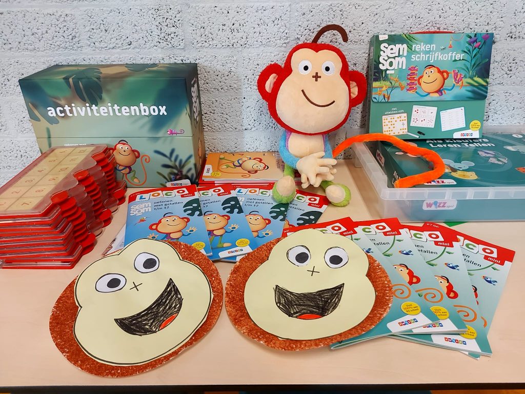 In de onderbouw hebben we het gehad over de maanden van het jaar en de dagen van de week. Hiervan hebben we samen een kalender gemaakt. We hebben ook cijfers op het schoolplein geschreven en de getallen tot en met 100 op de goede plek op de getallenlijn gezet. Tot slot zijn we gestart met de nieuwe rekenmethode Semsom. Uiteraard kon daar een zelfgemaakte Semsom niet aan ontbreken.